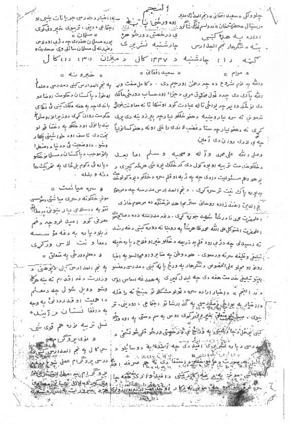 ــ جراید النجم : موسس مولوی سعید افغانی