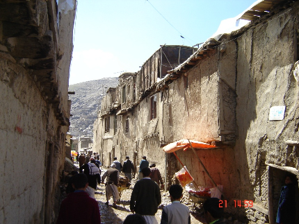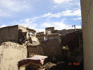 از مسیر گذر سنگتراشی بسوی زیارت عاشقان و عارفان روان شدم. کوچه و پسکوچه ها، ساباطها و دالانهای تنگ و دلگیر شهر کهنه کثیف، خاک آلود، مخروبه و بسیار فقیرانه است. مردم در منازل کهنه، نیمه ویران و بعضاً مخروبه زندگی کنند. تاهنوز دروازه های چوبین قدیمی، منازل چوبپوش و دیوارهای بلند حکایت از روزگاران سابق نمایند. در بین کاخهای شهرنو و دیگر مناطق عیان نشین و کوخهای محقر شهرکهنه از زمین تا آسمان فرق است. مردم در زمستان از دست گل و لای و در تابستان از گرد و خاک عذاب می کشند.