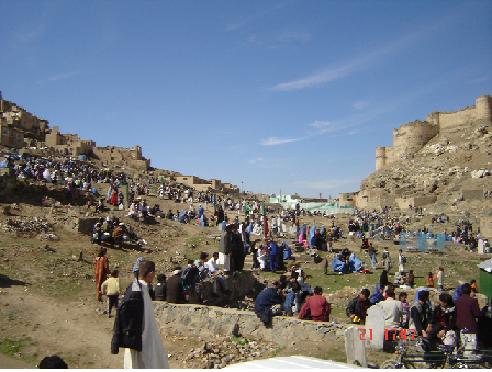 جوانان در گوشه و کنار این وادی به رقص و سماع و آواز خوانی سرگرم بودند. براستی که دلکش سیل و صفایی برپا بود. مردم بعد از سالها جنگ، اختناق و دلتنگی داشتند هوای آزادی را تنفس می کردند. از تیغ های خونریز و افکار ضد موسیقی، رقص و آواز طالبان اثری دیده نمی شد. زنان بدون ترس و دلهره روبندان چادری را بالازده بودند و طبیعت زیبا را نظاره می کردند. تعداد زنان و دختران غیرچادری که با لباس محلی و وطنی ملبس بودند نیز کم نبود. در میدان پشت بالاحصار دند آبی دیده می شد که در اثر برف و باران تشکیل شده بود. گویند که در تابستان اثری از آن نمی ماند و آب آن خشک می شود.