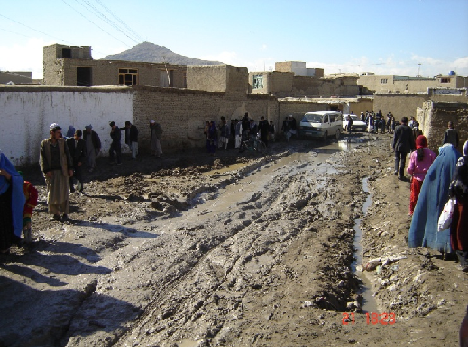 هنگام برگشت از راه بغل بالاحصار بسوی شهر کهنه و شوربازار به قدمزدن آغازیدم. در اولین کوچه در میان لای و گل گیرماندم. نه تنها من، بلکه زنان و دخترکان با کفشهای جدید و لباسهای نو و رنگارنگ در گل مانده بودند. موترهای نمی توانستند عبور کنند. از دست گل و لای و کثافات کوچه ها و هوای آلودۀ شهر کابل براستی که گلگشت و میله هم بجان آدم نمی شیند.
