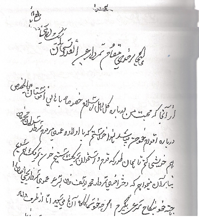 ” پس ازحمد صمدیکه مبنای زیست انسان واجرای دین ودولت را منوط به وجود مبارک پادشاه مربوط بعسکروسپا داشته تا هرکه گردن ازرشتۀ اطاعت فرمان فرما درکشد، اورا ازدم تیغ بیدریغ بگذرانند . . . زیرا اوامر ونواهی الهی واحکام شریعت حضرت رسالت پناهی صلی الله علیه والله والسلم، بسیاق اطیعوالله واطیعو رسول و اولی الامرمنکم، بتوسط سیاست سلطان کماحقه اجرا میابد. . .”(7)