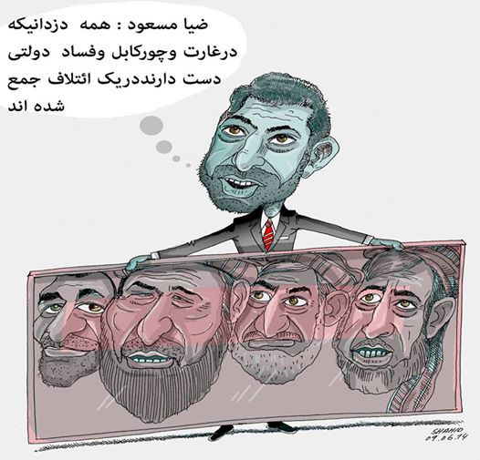 شما بخوانید که ضیا مسعود ، برادر احمد شاه مسعود چی میگوید : همه دزدانیکه در غارت و چور وچپاول کابل و فساد دولتی دست دارند در یک ائتلاف جمع شده اند. این وظیفه رئیس جمهور آینده است که چنین اشخااص را که باعث بد نامی وی میشوند از خود دور بسازد. زیرا اگر اینها باشند رئیس جمهور هم از آنها فرقی ندارد.