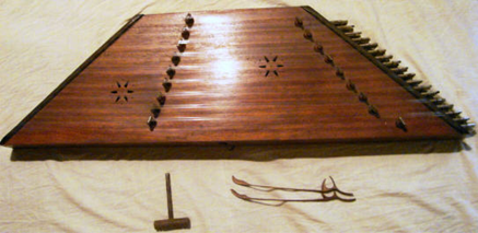 گذرانند و سیم‏ها را در درازای چوب امتداد داده به انتهای آن می بندند، سر دیگر سیم‏ها را به دو گوشک در انحام بالایی چوب وصل می‏کنند؛ با پیچاندن گوشک‏ها، سیم‏ها کشیده شده و میزان می‏شوند.