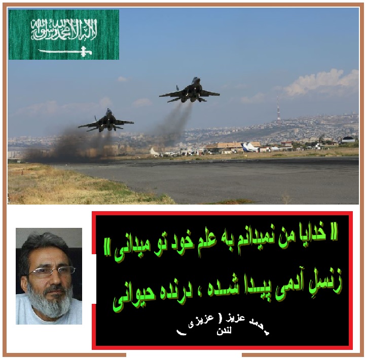 برادر محترم آقای عزیزی ،باید باز هم به عرض برسانم که اولا سروده ات عالیست و ثانیا عامل این همه جنایت و ادمکشی عرب های لامذهب ودر راس آنها سعودی آدمخور است که مسلمانان را هروز زیر بمباردمان طیارات خود به شهادت میرسند. واین که ایران افغان ها را میفروشد و به نفع خود به جنگ میفرستد عامل آنها هم بی امنیتی و بیکاری در کشور ما است که در راس آن یک تعداد دزد ها قرار دارند . ایران چند تا افغان را میفروشد ولی ع وغ با بی شرمی کشور مارا میخواهند به دشمن لامذهب و خون خوار مردم افغانستان یعنی پاکستان بفروش برساند. افغان ها از گرستگی و دربدری و بی سرنوشتی خود را به کشتن میدهند ولی افغانستان با سرمایه که داشت ودارد و قسمتی را مجاهد نما ها دزدی کردند و تعدادی هم دست نخورده است و لعنتی ها چرا بفروشند . مگر افغانستان بی صاحب است. کجا شدند آن مجاهدینی که میگفتند افغانستان را روس ها تصرف کردند و اکنون همان وحشی ها کشور را به بادار های خود پاکستان میخواهند بدهند. ولی باید بگویم که این آرمان را انشالله به گور خواهند برد. مردم ما حالا دوست ودشمن خود را میشناسند و همه میخواهند که بدون تعصبات زبانی ، مذهبی ، قومی ، نژادی و منطقوی متحدانه باهم زندگی کنند و به آن های که تعصب دارند و متعصب اند و نفاق می اندازند و یکی را از دیگری بهتر میگویند لعنت میفرستند و جای چنین انسان ها در پهلوی جنایتکار ها و وحشی ها در دوزخ است. روح آنعده از مجاهدین اصلی که واقعا به خاطر کشور خود جهاد نموده اند و حتی فامیل شان هم سرپناه ندارد شاد و یاد شان گرامی باد.لعنت به جنیاکاران جهان بخصوص سعودی آدمخور. موفق وسلامت باشید. مهدی بشیر