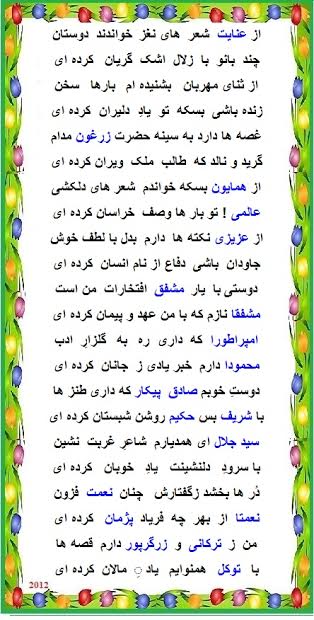 از عنایت  شعر  های نغز  خواندند  دوستان