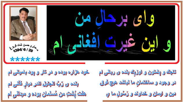 واى بر حالِ من و اين غيرتِ افغانى ام