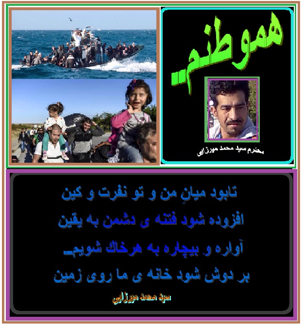 درود به جناب میرزایی عزیز ، تشکر از احساس پاک تان . بلی این خاینین و بی کفایت ها با تفرقه و تعصبات مذهبی تعدادی از هموطنان عزیز ما را توسط باداران سعودی یعنی داعشی ها و چتلستان وحشی یعنی طالبان جنایتکار به شهادت رساندند و خود شان هنوز هم سر قدرت و دالر به توافق نرسیدند و تعدادی از مردم مظلوم ما را با دست خالی آواره و سرگردان کشور ها ی بیگانه نمودند که از هر ده نفر چها ر تا پنج تن در آبهای بین ترکیه و یونان غرق و تلف شدند. روحشان شاد و جنتها نصیب شان . لغتت و نفریت به چنین دولت فاسد و بی کفایت . تشکر از سروده واقعی تان .موفق باشید . مهدی بشیر