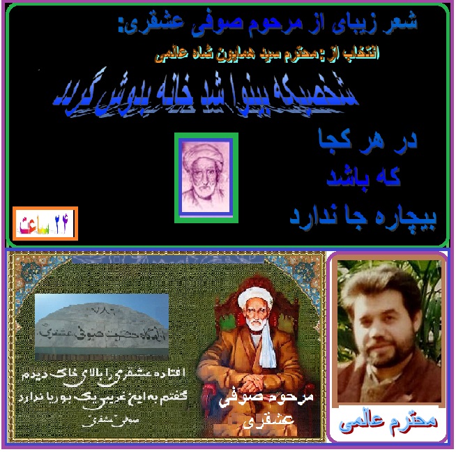 جناب عالمی عزیز ، تشکر از انتخاب زیبا تان .زوح شاد روان صوفی عشقری شاد و جنتها نصیبش . سروده عالیست. موفق و سلامت باشید .مهدی بشیر .