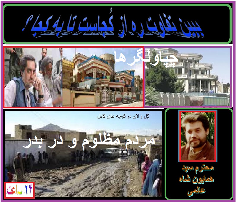 درود به عالمی عزیز ، واقعآ ببین که تفاوت ره از کجاست تا به کجا ؟ شاروالی تا بفکر کوچه های مردم غریب باشد وبفکر منطقه دزد ها و چپاولگر ها که شاید خودش هم مانند ع و غ و د یگر دولت وحشت ملی فاسد سهم داشته باشد. واقعآ جای شرم است که هنوز از باران های بهاری خبری نیست و ضع اکثر نقاط غریب نشین که نه دزدی کردند و نه زمین های دولتی را چور نمودند و به په دالر های که برای آبادی افغانستان سرازیر شد برای خود چنین خانه ها و اپارتمان ها ساختند. باید از ایشان پرسید شما سی سال قبل به کجا زندگی میکردید ؟ آیا چنین خانه ها را به خواب هم می دیدید ؟ که هر کدام شما حتی والی های به اصطلاح جهادی تان و دیگر دارودسته تان از صدقه سر همین مردم مطلوم و بیچاره ملیاردر شده اید. لعنت و نفرین به هرچه دزد ، فاسد ، چپاولگر ، بی کفایت است. خداوند زود تر حق را به حقدار برساند و شما را هم نابود کند. سروده زیباست . از خواندن و نوشتن کامنت آن اشک از چشمانم جاری شد و دهها بار گفتم لعنت خدا به شما و حامیان تان . موفق باشید عالمی قند. مهدی بشیر