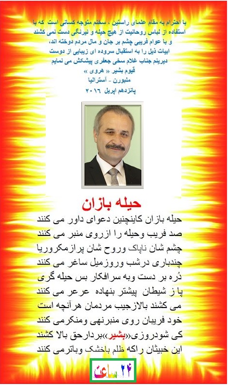 با احترام به مقام علمای راستین ، سخنم متوجه کسانی است که با استفاده از لباس روحانیت از هیچ حیله و نیرنگی دست نمی کشند و با عوام فریبی چشم بر جان و مال مردم دوخته اند،