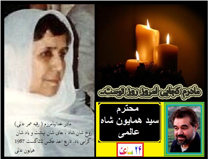 درود به جناب عالمی عزیز ، تشکر از سروده زیبا تان بمناسبت روز جهانی زن. ، خداوند تمام مادران عزیزیکه در قید حیات نیستند بخصوص والده گرامی شما و مادر مهربان ما را مغفرت کند ، روحشان شاد و جنتها نصیب شان و همچنان آنعده مادران گرامی که شکر حیات دارند برایشان طول عمر با عزت عنایت فرماید و روز جهانی زن و مادر را به تمام مادران گرامی افغان و جهان تبریک عرض میکنم. موفق وسلامت باشید. مهدی بشیر