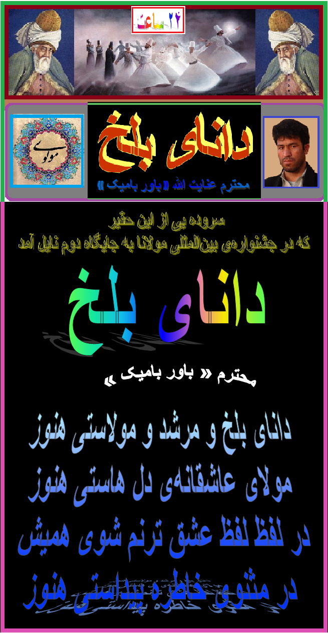 سروده یی از این حقیر که در جشنوارهی بینالمللی مولانا به جایگاه دوم نایل آمد.