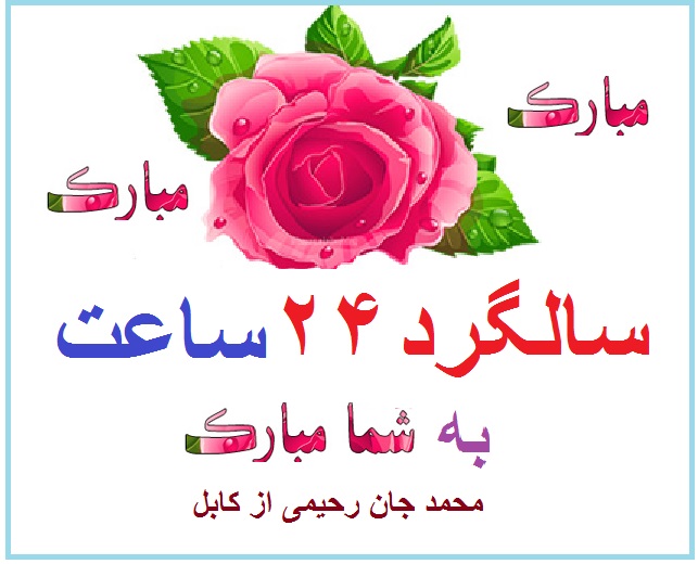 به مناسبت نهمین سال تأسیس سایت وزین وزیبای ۲۴ ساعت تبریکات وتمنیات نیک خود را حضور دوست گرانقدر وبرادر محترم آقا محمد مهدی بشیر مؤسس وگرداننده این سایت زیبای ادبی وفرهنگی صمیمانه و مخلصانه تبریک عرض میکنم.