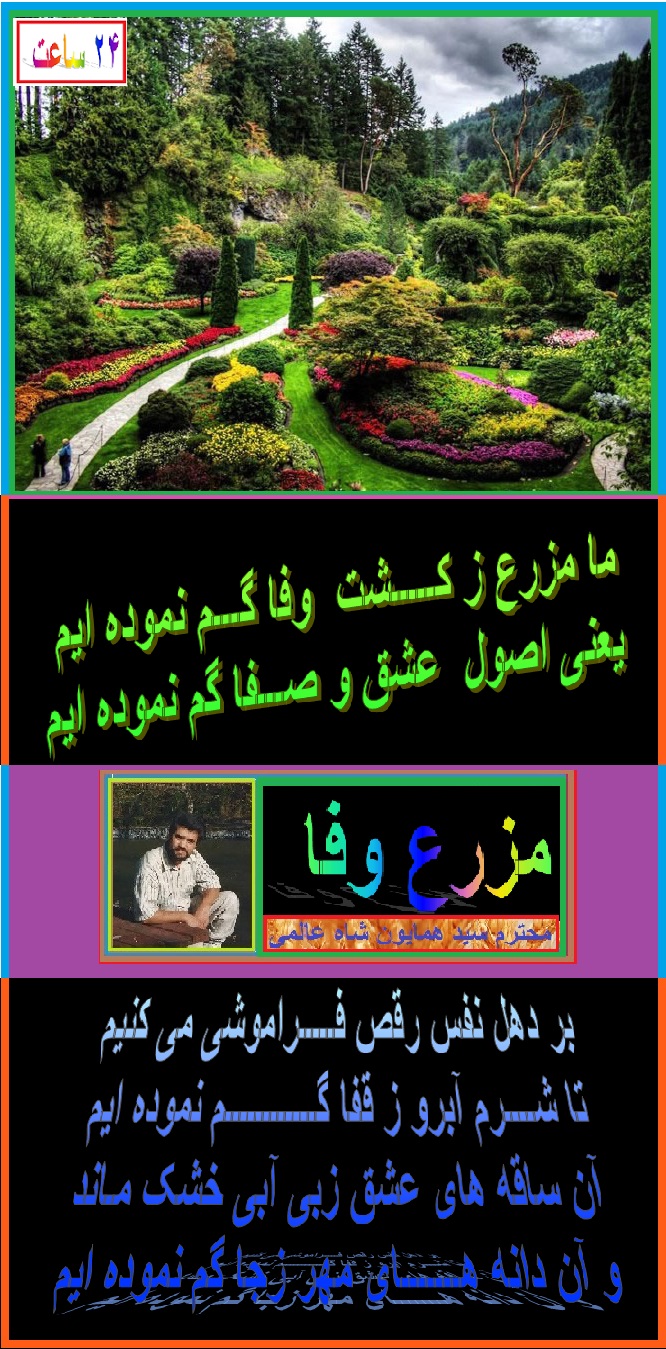 دوست عزیز و فرهنگی گرانقدر جناب مهدی بشیر درود برشما، سپاس از نشر این سروده در سایت وزین 24 ساعت ، زنده و سلامت و سرفراز باشید.