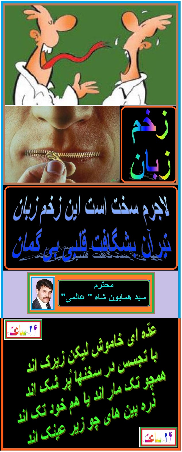 زخم زبان عنوان یک ترجیع بند من است که تقدیم شما دوستان میدارم