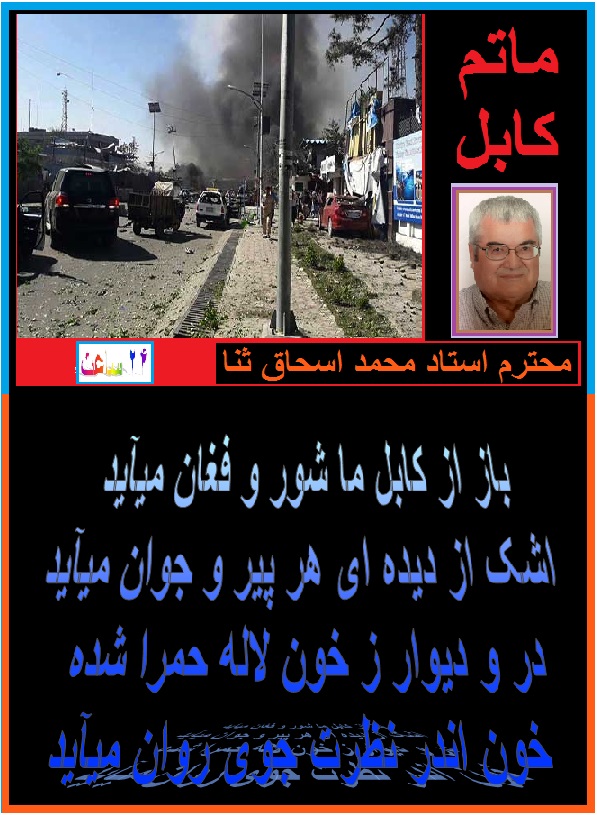 درود به استاد محترم جناب آقای ثنا عزیز ، تشکر از سروده عالی تان. لعنت و نفرین به جانی ها و قاتل های مردم شریف کابل و حامیان خایین و وطنفروش آنها. مرگ به دولت وحشت ملی ودیگر جنایتکاران وحشی. موفق باشید. مهدی بشیر