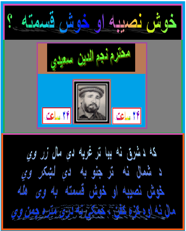 تشکر از جناب الحاج نجم الدین سعیدی ، سروده عالیست. موفق باشید.