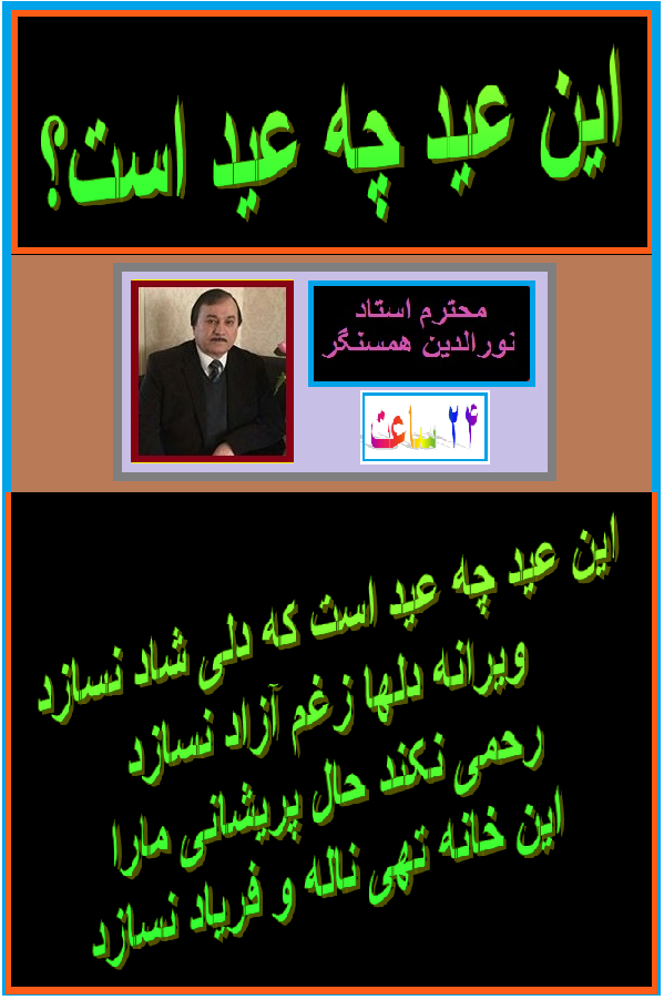درود به برادر گرامی جناب آقای استاد نورالدین همسنگر ، تشکر از سروده زیبا و مملو از احساس تان . با ورود برادر بزرگ طالب و داعش و بی کفایتی دولت فاسد وحشت ملی و ارگ نشینان وطنفروش قربانی های مردم ما در این اواخر به اوج خود رسیده و هموطنان ما عوض عید به ماتم نشسته اند. خداوند این قاتلین مردم افغانستان را به سزای اعمال شان برساند. روح شهدای عزیز ما شاد . لعنت ونفرین به کسانیکه خوشی ها را از ما گرفتند و میگیرند. موفق وسلامت باشید. مهدی بشیر