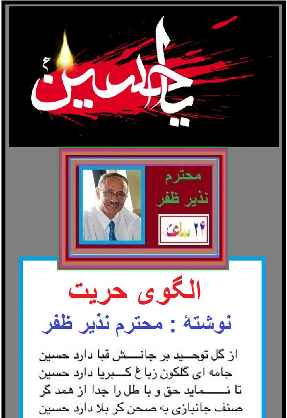 امروز شنبه هشتم میزان ۱۳۹۶ برابر است به نهم ماه محرم ۱۴۳۹ هجری قمری روز تاسو عا و فردا یکشنبه روز دهم ماه محرم روز عاشورا و شهادت مظلومانه حضرت امام حسین ( ع ) فرزند حضرت فاطمه علیهاالسلا م و نواسه حضرت محمد ( ص ) است . این روز ها را به تمام مسلمانان افغان و جهان تسلیت عرض میکنم. و تشکر از سروده مملو از احساس محترم نذیر جان ظفر . به آرزوزی صلح و امنیت ، بدون خونریزی ، تعصب وتفرقه و نابودی دشمنان در کشور. مهدی بشیر