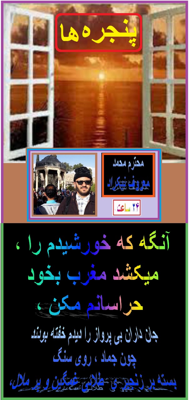 درود به برادر گرامی جناب آقای محمد معروف نیکزاد ، ضمن عرض تبریک سال نو 2018 میلادی بازهم عالی سروده اید. موفق باشید. مهدی بشیر