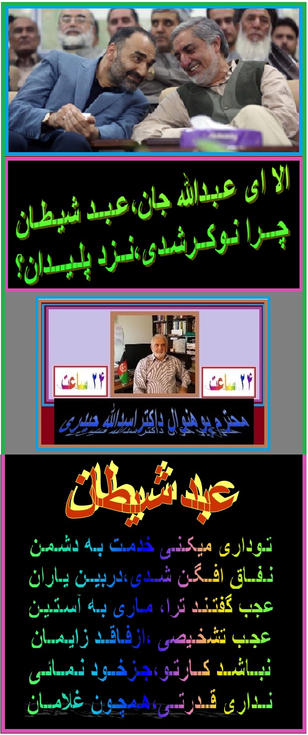 درود به جناب محترم پوهنوال داکتر اسدالله حیدری ، تشکر از سروده عالی تان. بایدبه عرض برسانم که تنها عین الله مردم شریف پنجشیر را خجالت نداده ، غین الله هم مردم شریف لوگر را خجالت داده ، و دیگر رهبران و قدرتمندان تمام مردم افغانستان را نزد کشور های خارجی خجالت داده اند . این چاپلوس های ارگنشین ، دولت وحشت ملی ، گلبیدین فلاکتبار ، اتمر لنک و غیره وغیره هم خاین ها ، فاسد ها ، نوکر کشور های خارجی بوده وهستند و چشم این پلید ها از سیر شدن نیست. فقط تفرقه می اندازند و حکومت میکنند. لعنت به همه جانی ها و وحشی ها . موفق باشید. مهدی بشیر