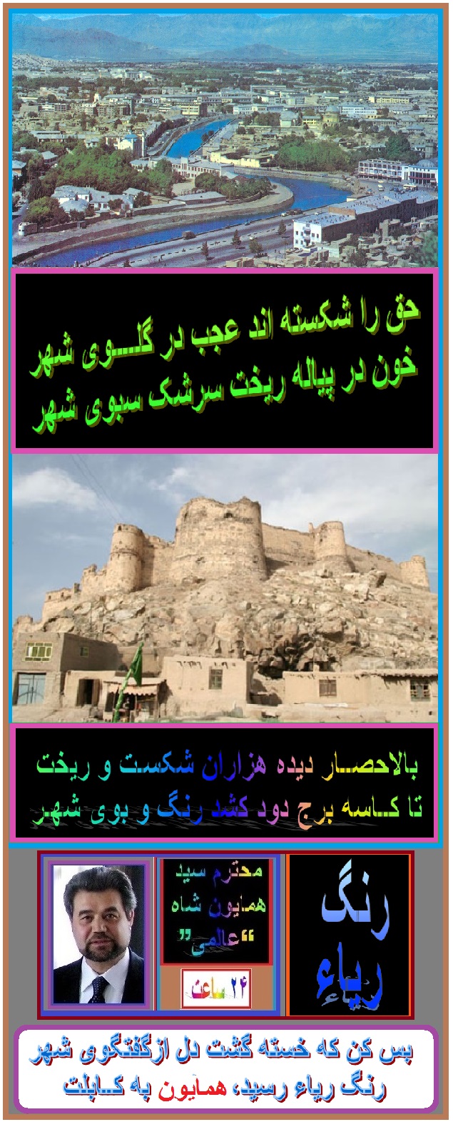 درود ها نثار برادر گران ارج و فرهنگی عزیز ما جناب مهدی بشیر ! شکر خداوند متعال که صحت تانرا دوباره دریافته و به فعالیتهای روزانۀ تان می پردازید، برایتان از بارگاه ایزد متعال صحت و سلامتی و موفقیتهای مزیدی آرزو دارم شاد و موفق و سرفراز باشید. سپاس فراوان از نشر این سروده در سایت وزین 24 ساعت…