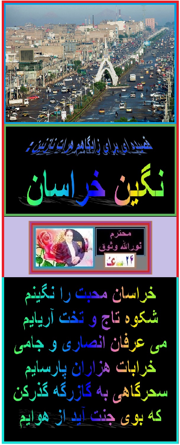 تشکر از جناب وثوق عزیز بابت قصیده عالی در باره نگین خراسان یا هرات زیبا . جالب بود . موفق باشید. مهدی بشیر