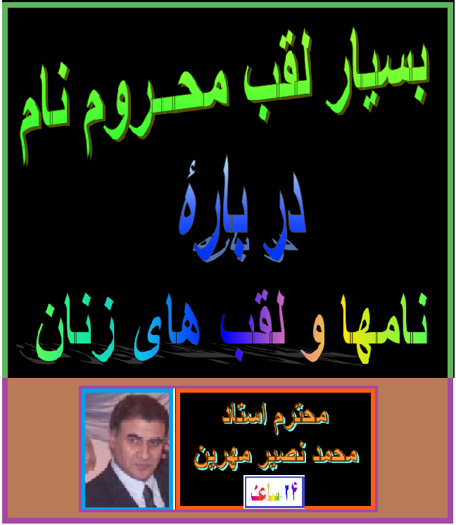 بارِ ستم وجفایی که بر شانۀ زنان هموطن من نشسته، در زمینه های مختلف او را همراهی مینماید. یکی از نمودهای آن، پنهان داشتن نام اواست. اگرقدرت سیاسی ونفوذ فرهنگی توانسته است لقبهایی را برای مردان بیافریند، وقتی چشم به سوی زن دارد، فرهنگ مردسالار وسنت های زن آزار، با وضاحت تمام، آن ستم وجفا را به نمایش میگذارد.