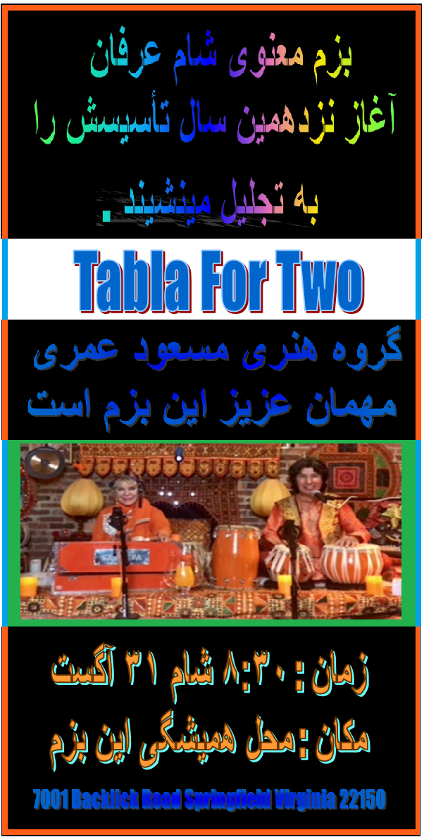 بساعت ۸:۳۰ شام ۳۱ آگست ۲۰۱۸ در ورجینیای امریکا محفل آغاز نزدهمین سال تاسیس بزم معنوی شام عرفان تجلیل میشود .
