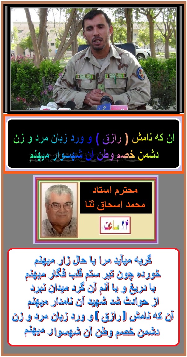 درود به جناب محترم استاد محمد اسحاق ثنا ، روح شهید جنرال رازق و دیگر شهدای کشور شاد و جنتها نصیب شان. تشکر از محترم آقای ثنا . مهدی بشیر