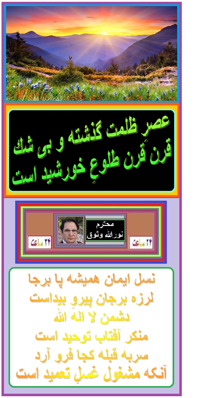 درود به جناب وثوق عزیز ، بازهم سروده زیبا و عالیست . انشاالله { قرن قرن طلوعِ خورشید است } موفق وسلامت باشید. مهدی بشیر