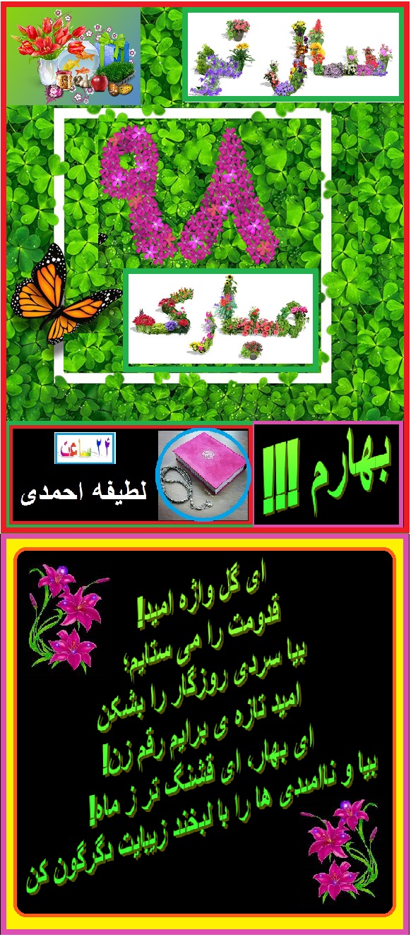 درود به خواهر گرامی ام محترمه خانم لطیفه احمدی ، تشکر ازشما ، بسیار زیباست. سال نو خورشیدی ۱۳۹۸ و بهار زیبا و نوروز باستانی را بشما ، خانواده محترم و هموطنان عزیز در کشور و جهان تبریک عرض میکنم. امیدوارم که سال نو در افغانستان یک سال مملو از سلامتی ، صلح و امنیت باشد. مهدی بشیر