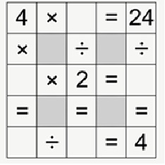 در جدول ذیل پنج عدد را در پنج خانه سفید طوری جابجا نمایید که با جوابات دلده شده مطابقت نماید.