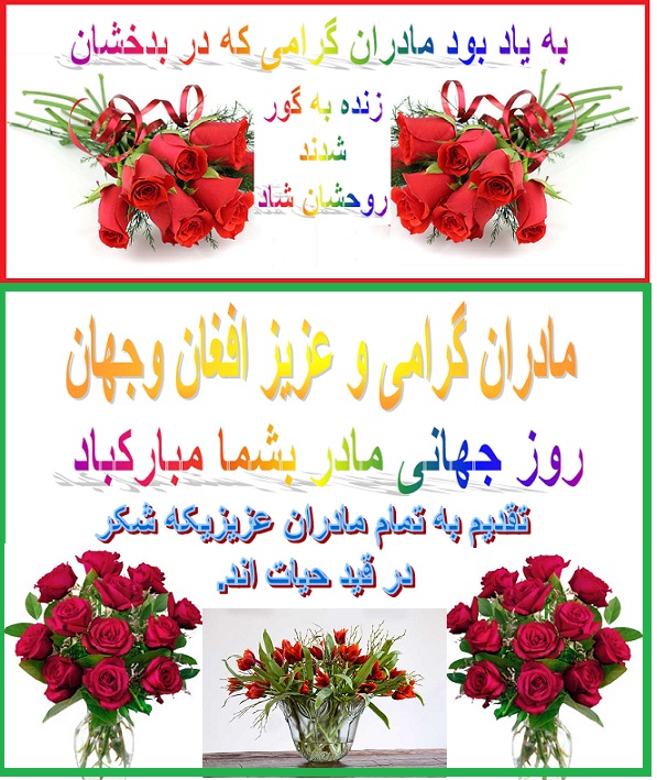 امروز یکشنبه ۱۱ ماه می ۲۰۱۴ مصادف است به روز جهانی مادر که در اکثر کشور های جهان بخصوص در کشور هالند با دادن تحایف و دسته های گل از مادران شان تجلیل بعمل می آورند و فرزندان شان مادران خود را مورد نوازش قرار داده و از زحمات شان تشکر میکنند.