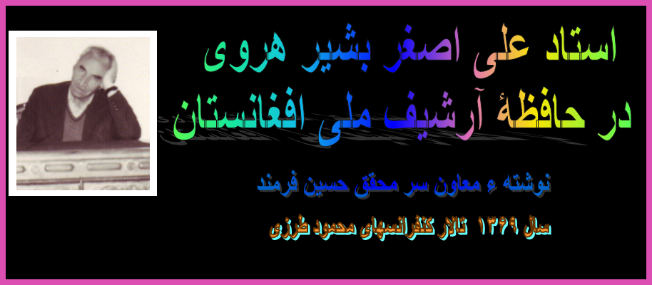 امروز مصادف است با سی و سومین سالروز درگذشت پدر عزیز ما شادروان استاد علی اصغر بشیر هروی که بتاریخ اول قوس 1360 خورشیدی در شهر تهران به رحمت حق پیوستند و فردای آن در شهر مقدس مشهد در بهشت رضا بخاک سپرده شدند بدین بهانه یکی از سروده های ایشان را که 62 سال قبل از امروز در شهر باستانی هرات سروده بودند تقدیم شماعزیزان می نمایم. روح ایشان شاد،خلد برین جای شان ویاد وخاطره شان جاودانه باد.