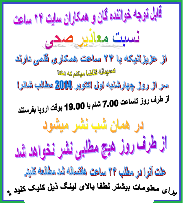 تاریخ نشر پنجشنبه دوم دلو۱۳۹۳ – ۲۲ جنوری ۲۰۱۵ هالند