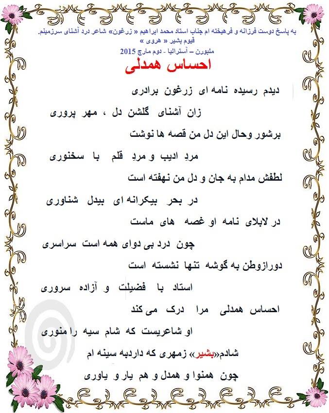 لطفأ این بداهه ناچیز را بعنوان مؤدت و عرض ادب بپذیرید.