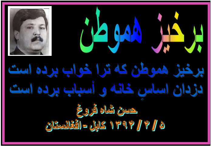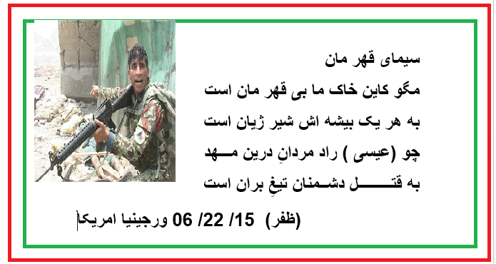 در اوایل سال 2002 ترسایی که آمریکا به رغم خودش تازه به افغانستان آمده بود شعر مثنویی را سروده بودم که امروز پیش بینی من روشنی بخش آن روز است تا نزد شما فرهیختگان واهل قلم چه درنظر آید .