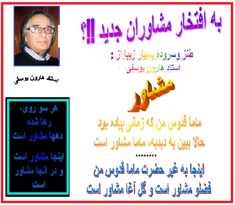 به اجازه استاد محترم جناب آقای هارون یوسفی و تشکر از سروده طنزی شان در مورد مشاورین .