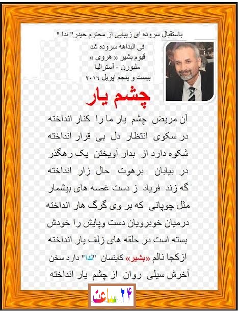 تاریخ نشر پنجشنبه نهم ثور ۱۳۹۵ – ۲۸ اپریل ۲۰۱۶ هالند
