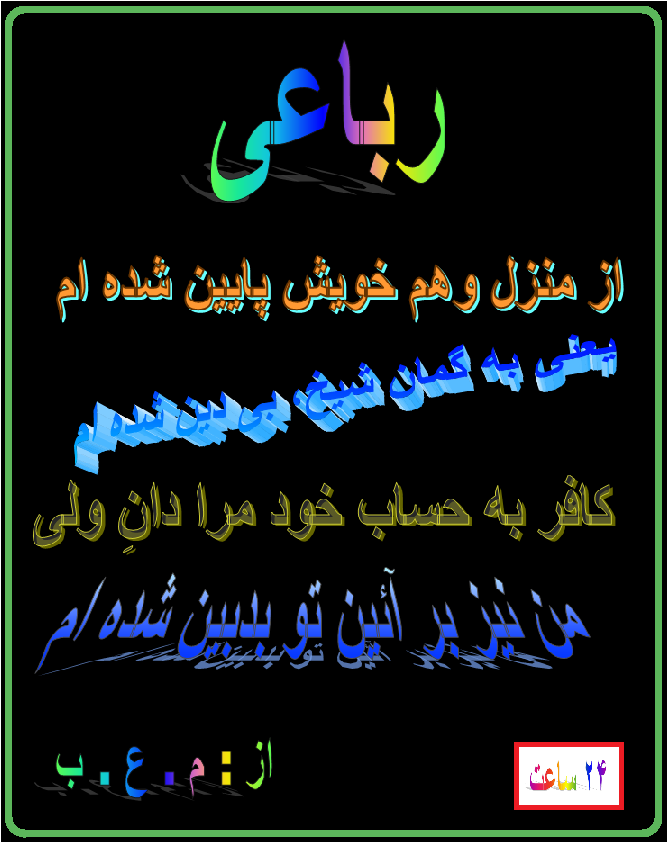 درتاریخ : ۴ میزان ۱۳۸۶ خورشیدی برابر به ۲۶ سپتامبر ۲۰۰۷ میلادی حدود ۹ سال قبل که سایت ۲۴ ساعت تاسیس شده بنده در سرلوحه آن چنین نوشتم :