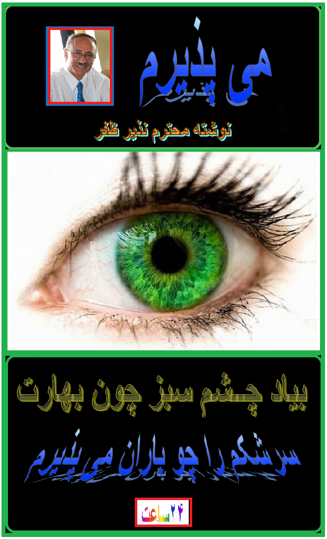 شعری را که شش سال قبل ازامروز سروده بودم ازپنجمین مجموعه شعرم انتخاب و پیشکشِ حضورِ تان می کنم.بینیم که بعد ازگذشت این شش سال که هرلحظه اش برای ملت بیچاره ما مملواز عالمی رنج ودرد واندوه فراوان بود چه تغیراتِ مثمر وامیداوارکننده درزنده گی ملت ما رونما گردیده ؟