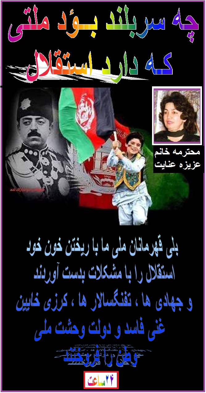 با کمال تأسف که وطن عزیز ما در چهار دهء اخیرهدف تجاوزات بیگانه ها ونوکران وطنفروش آنها گردیده است.هر روزی که میگذرد، وضع کشورمحبوب وهم میهنان مظلوم ما بدتر از روز قبل گردیده و هیچ دور نمای بهبودی تصور نمی شود.