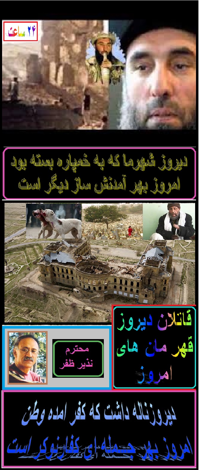 ۹ سال از نشر و تاسیس سایت شما میګذرد. در این مدت اشخاص فاسد ، بی کفایت ، بی غیرت ، وطنفروش ، تفنگسالار به اصطلاح مجاهد ، آدم ربا ها ، چپاولگر ها ، دزد ها ، آدمکشها ، نوکران حلقه بگوش کشور های منطقه و جهان ، بخصوص کشور وحشی چتلستان دالخور ، سعودی وهابی آدمخور ، آخند های نا ملا ایران، متعصبین و تفرقه انداز ها و دیگر کشورهای متجاوز جهان در کشور ما پادشاهی کردند که از همه بدترو خایین ترین آنها دولت وحشت ملی غنی بی کفایت و عبدالله بی غیرت بود که این خایین ها نتوانستند طی دو سال اخیر مانند برادر بزرگشان کرزی وطنفروش و فاسد ، امنیت و صلح را در کشور ما با وجود سرباز های ناتو و امریکا بر قرار کنند و هر روز دهها انسان مظلوم توسط برادران و حشی کرزی و غنی با حملات انتحاری به شهادت میرسند و یا آواره کشور های بیگانه میشوند که در دوسال گذشته هزاران هموطن ما یا توسط طالبان جنایتکار و یا هم در آبهای یونان غرق و شهید شدند و هزاران طفل ما بی پدر ، زنان بی فرزند و بی شوهر و مردان بی خانه وزندگی شدند .