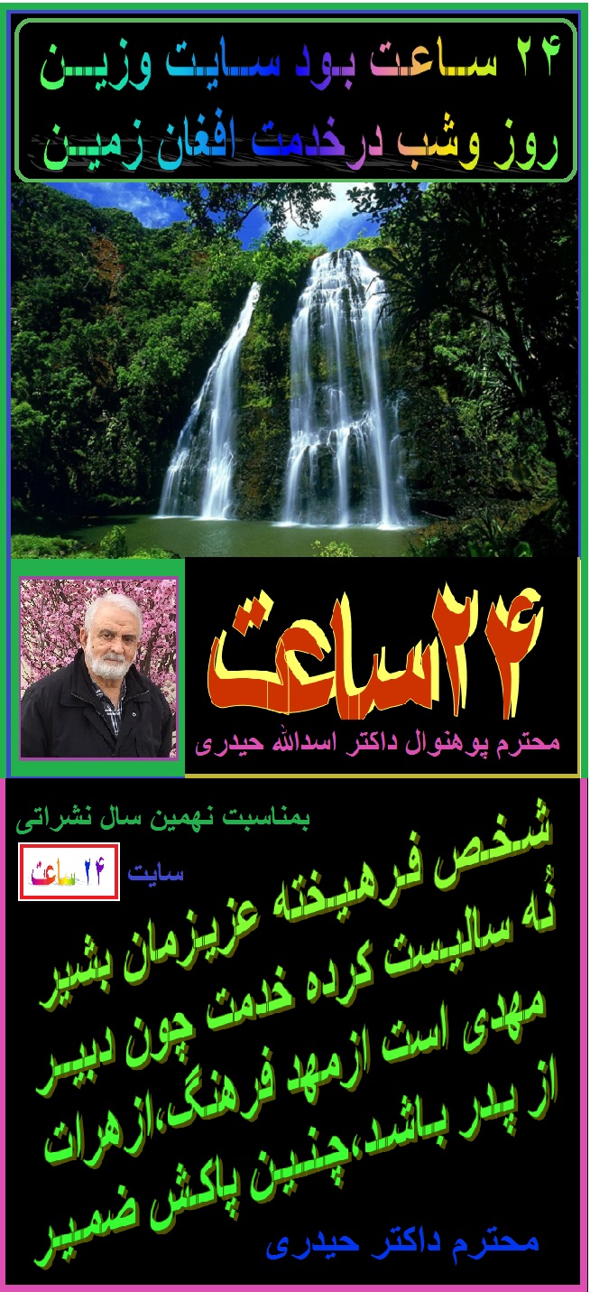 بنده قبل از اینکه درباره فرارسیدن نهمین سالگرد سایت ۲۴ ساعت چیزی بنویسم ُ میخواهم در باره دولت بی کفایت افغانستان و ملت ستم دیده و مظلوم آن چند سطری بنویسم .