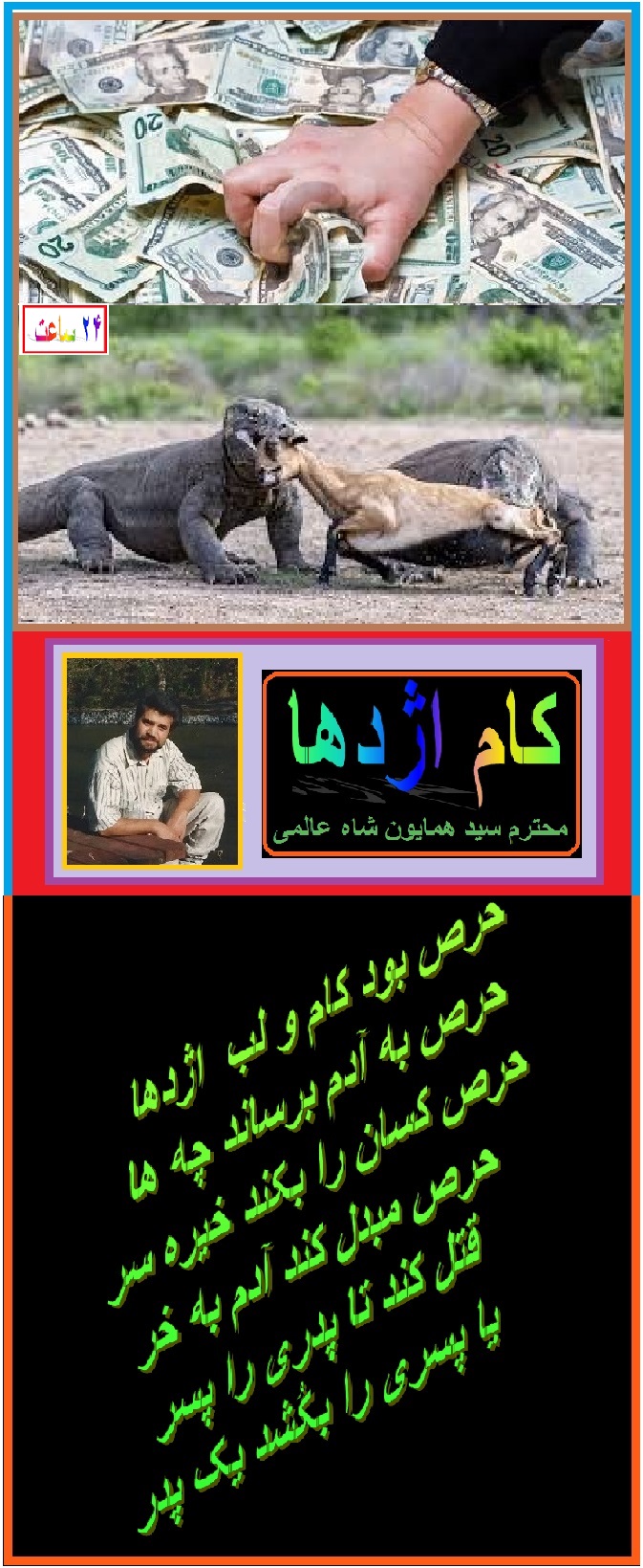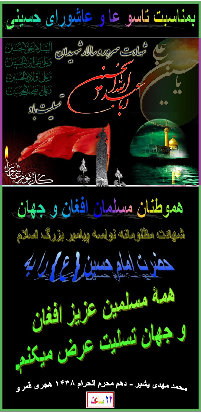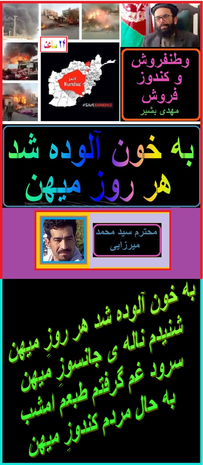« تشکر از محترم استاد عنایت الله باور بامیک. شاعران عزیزیکه نظر و انتقادی داشته باشند میتوانند بنویسند. موفق وسلامت باشید. مهدی بشیر » موضوع خیلی جالب است ، از تمام شاعران عزیز و همکاران سایت ۲۴ ساعت میخواهم که حتمآ در باره این دیدګاه و آن نوشته نظریات ، انتقادات و پیشنهادات سالم خودرا با رعایت عفت کلام وقلم بنویسند . سایت ۲۴ ساعت در خدمت شان است .