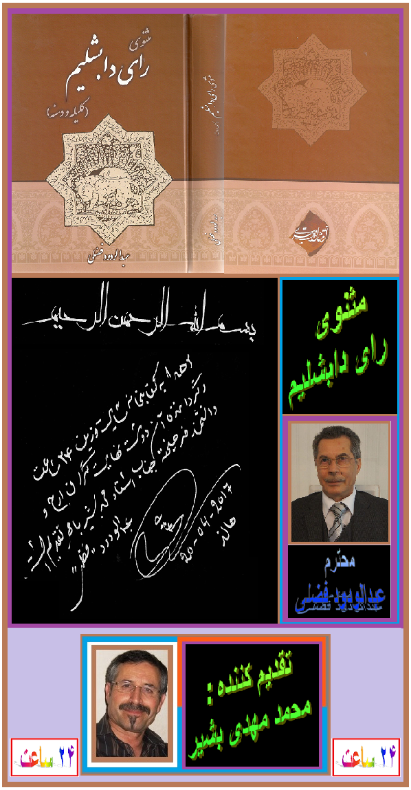 دوستان محترم ضمن عرض سلام وادب به اطلاع تان میرسانم که چندی قبل جناب محترم آقای عبدلودود فضلی شاعر گرامی لطف کردند این کتاب ارزشمند را از طریق پست به اینجانب و کتابخانه کوچک سایت ۲۴ ساعت اهدا نمودند که با اظهار سپاس از ایشان به معرفی مختصر این کتاب جالب که با قطع و صحافت زیبا در یک هزار نسخه و ۵۹۴ صفحه اقبال نشر یافته میپردازم واز ایشان معذرت میخواهم که نظر به مشکلات کاری و صحی نتوانستم بوقتش از آن یاد آوری نمایم