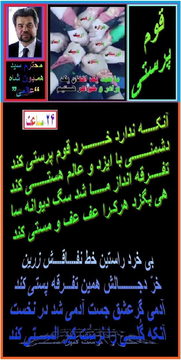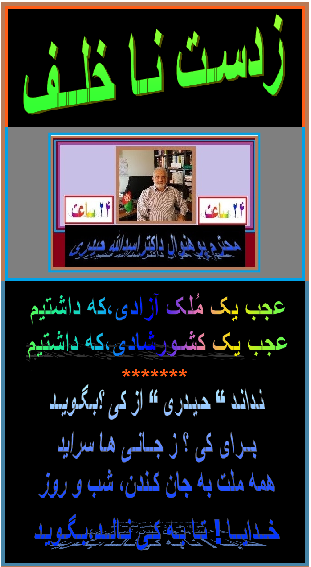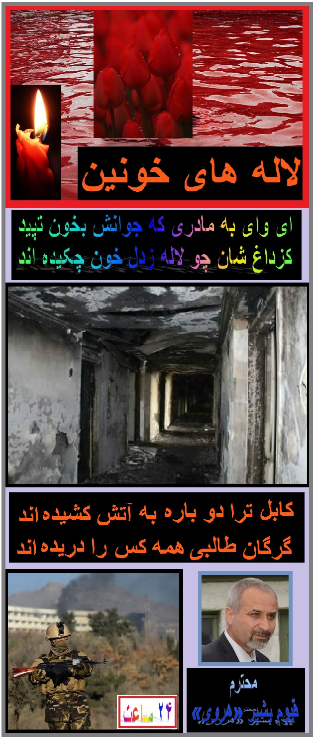درود به برادر عزیزم قیوم جان و تشکر از همدردی ات نسبت شهادت و زخمی شدن اصافه از دوصد و پنجا ه تن از هموطنان بیگناه ما توسط افراد گلبیدین و یا برادران نا خلف کرزی خاین ، غنی فاسد ، عبدالله بی غیرت ، اتمر لنگ وطنفروش . و گلبیدین چانی و راکت انداز در چهارراهی صدارت در نزدیکی ساختمان سابق وزارت داخله افغانستان .