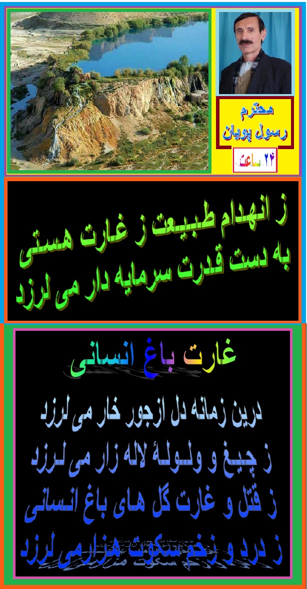ابیات ذیل را به استقبال سروده ای از شاعران گرامی هر یک شیوا واصفی ، اسماعیل یوسفی ، فرزاد مقبلی ، الماس بلخ ، حبیب الله و سید عتیق الله ساعی تقدیم شما عزیزان می نمایم ، امید مورد پسند واقع شود.