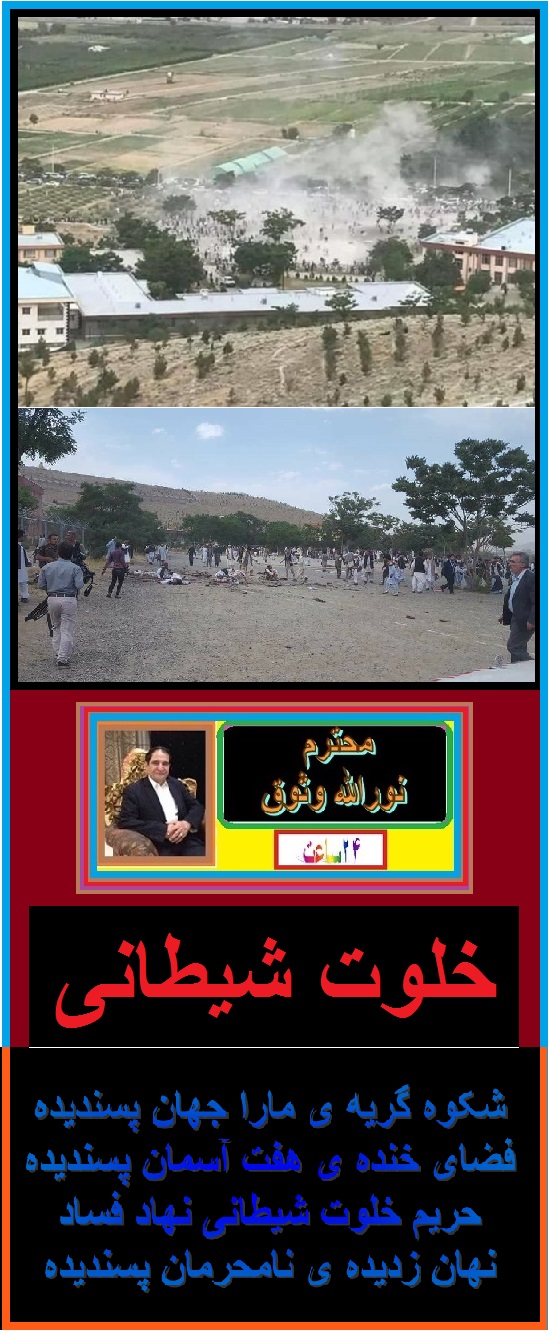 جانیان از خدا بیخبر بار دیگر دست به جنایت هولناک زده و تعدادی از هموطنان عزیز ما را بخاک و خون کشیده و صدها خانواده را داغدار ساختند. ضمن عرض تسلیت خدمت آنعده از هموطنان ما که عزیزان شان را از دست داده برای شهدأ بهشت برین و برای بازماندگان شان صبر و شکیبایی تمنا داشته و برای مجروحین این حادثه صحتمندی و بهبودی کامل آرزو میکنم و یک بار دیگر بر مسببین این جنایات و حامیان ارگ نشین شان نفرین میفرستم.